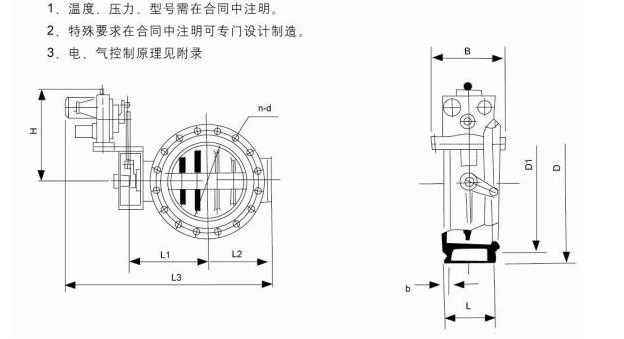 自動調節電動蝶閥由電動執行器輸出軸,帶動連桿,再由連桿帶動閥軸蝶板作90°范圍內的旋轉,達到自動調節或啟閉的目的。